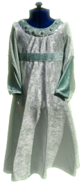 Varje design har sytts med generös detaljrikedom i form av syntetisk päls, vävt guld eller silver och handpåsydda pärlor/stenar. Alla plagg har en öppning mitt bak med fastydda kardborrband.