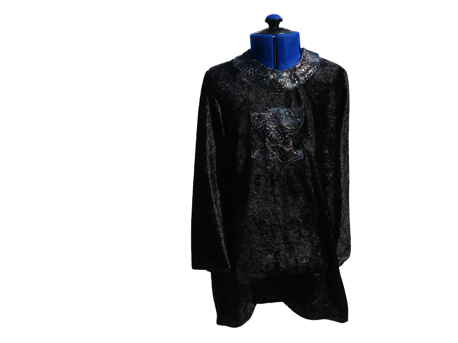 Orch är halvlång och når ner över höften, sydd i svart krossad velour. Detaljer, bland annat en ”orchskalle” i syntetiskt svart ormskinn är fastsydd på bröstet.