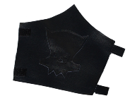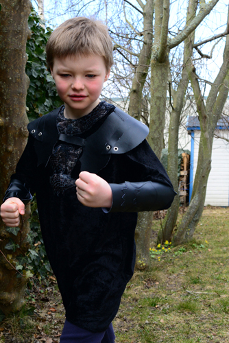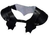 Det följer också med ett axelskydd i svart syntetläder med läderfjäll, hopsatta av silverfärgade metallringar.